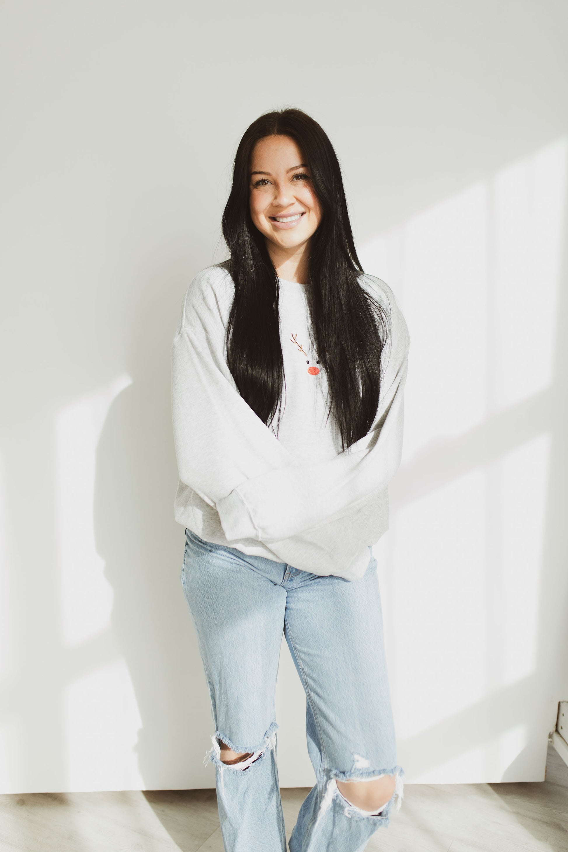 A festive favorite with a subtle twist. This cozy crewneck features a clean, minimalist Rudolph design—perfect for adding a touch of holiday cheer without going over the top. Soft, comfy, and effortlessly cute, it's your go-to for winter days and cozy nights in. 🦌🎄✨